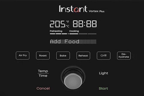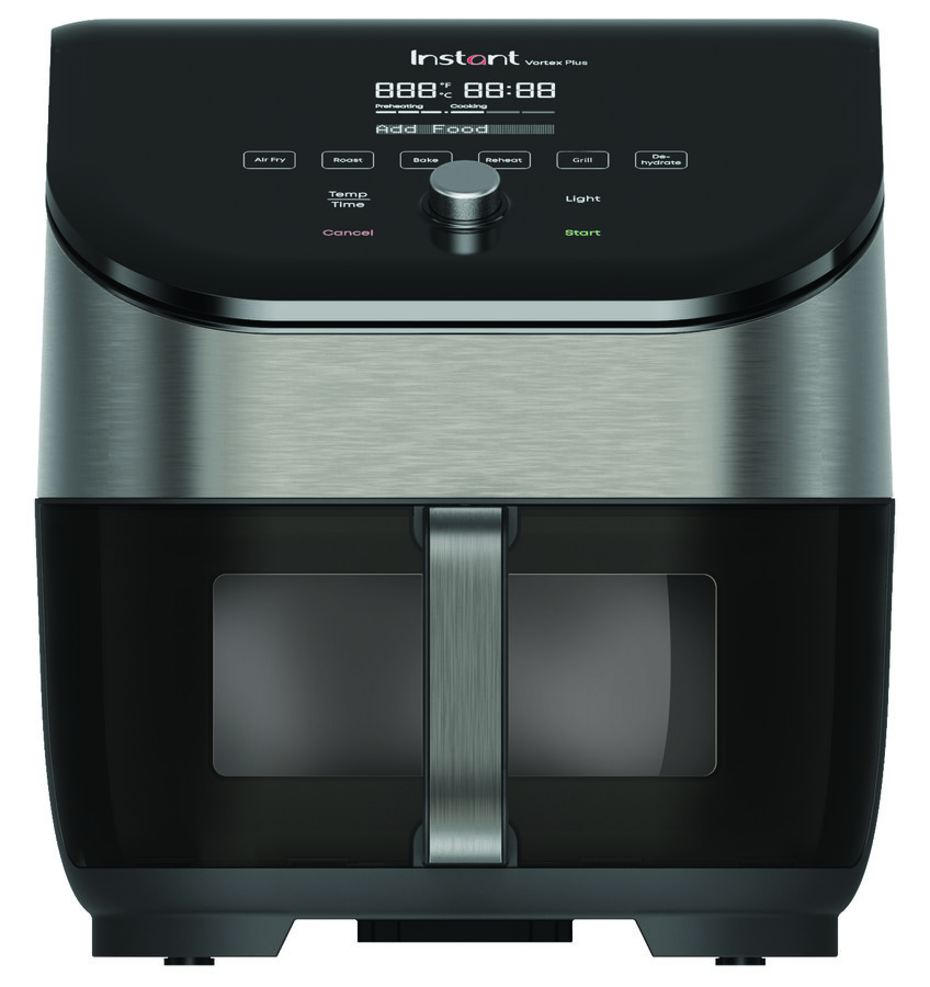 Instant™ Vortex™ Plus to przede wszystkim frytkownica smażąca beztłuszczowo gorącym powietrzem, wyposażona w wiele ułatwiających obsługę funkcji. Jednym z kluczowych udogodnień względem innych modeli frytkownic jest wbudowane okienko ClearCook. Dzięki wewnętrznemu podświetleniu możliwy jest podgląd potrawy na bieżąco, bez potrzeby otwierania i wyciągania kosza, a więc bez strat energii. Drugim ważnym ulepszeniem jest technologia OdorErease, która sprawia, że zapach potrawy nie roznosi się po całym domu. Standardowa dla urządzeń serii Instant™ Vortex™ technologia przepływu powietrza EvenCrisp™ zapewnia uzyskiwanie potraw o wyjątkowej chrupkości i głębokim smaku przy użyciu minimalnej ilości tłuszczu. Model Vortex™ Plus ma aż 6 programów, które dają mnogość zastosowań przy zachowanej prostocie użytkowania.